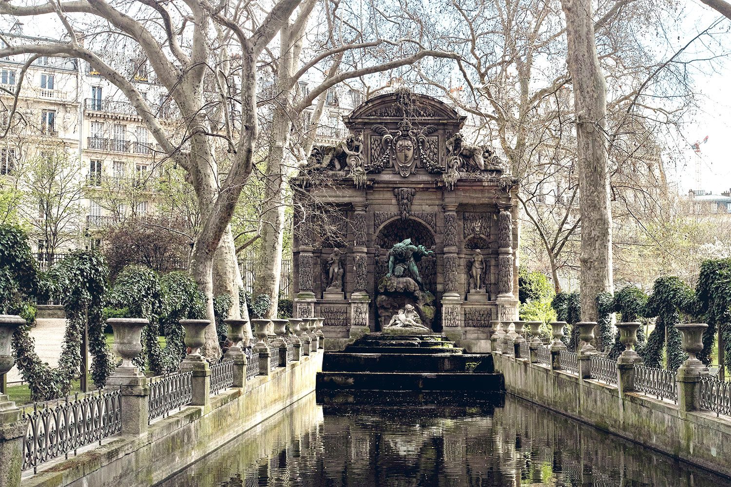 Even though the Jardin du Luxembourg is hardly a Parisian hidden spot, I've got to admit that there always seems to be more to discover about it than I manage to remember. Sure there is the big central square with its iconic chairs and inevitable people watching, but there's also more intimate of surprising corners waiting to be explored. Like the Medicis fountain, which, even though it's right next to a rather busy alley, always remains mysteriously quiet.