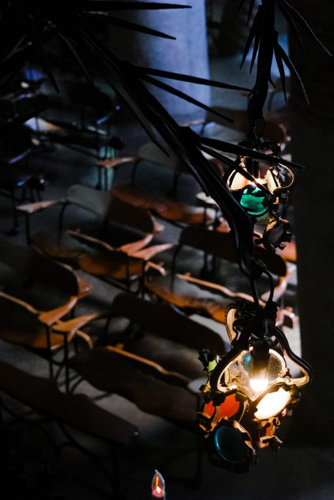 Son architecture est incroyablement inspirante et variée, audacieuse et romantique à la fois, complètement fantastique et étrangement futuriste par moment. Visiter ses bâtiments permet d’imaginer un instant l’esprit incroyable qui leur a donné naissance. Le sujet est riche et vaste, mais j’avais envie de commencer par les intérieurs (j’ai un peu triché sur certaines photos, mais on pourrait aussi dire que c’est une série sur la dimension plus intimiste de son oeuvre). Les photos ci-dessus font l’aller-retour entre les intérieurs bourgeois presque normaux de la Casa La Pedrera, le gothique extravagant du Palais Guëll et l’étrange travail organique de la pierre de l’église de la Colonia Guëll.